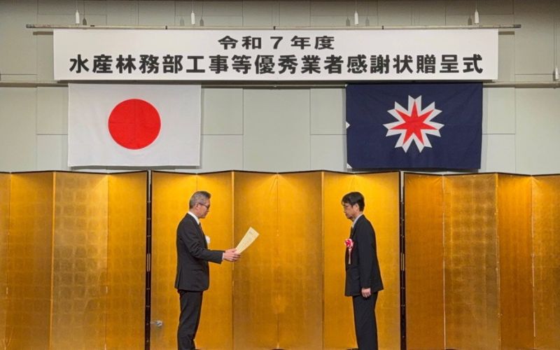 「令和7年度 水産林務部工事等優秀業者知事感謝状」を拝受しました